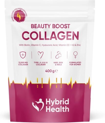 Hybrid Health Collagen Supplements for Women – Beauty Boost Collagen Powder Supporting Skin, Hair & Nails | with Biotin, Vitamin C, Hyaluronic Acid, Vitamin D3 + K2 & Zinc for Womens Health