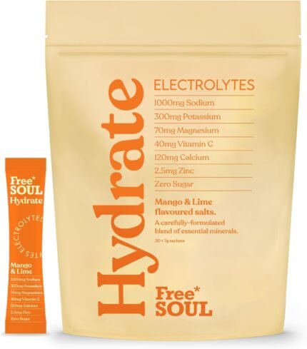 Free Soul Hydrate | Electrolyte Hydration Sachets | Zero Sugar | 30 Sachets | Advanced Electrolyte Powder with Sodium, Magnesium, Vitamin C | Mango & Lime Flavour