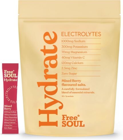 Free Soul Hydrate | Electrolyte Hydration Sachets | Zero Sugar | 30 Sachets | Advanced Electrolyte Powder with Sodium, Magnesium, Vitamin C | Mixed Berry Flavour