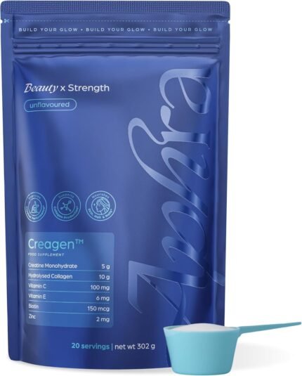 APHRA CREAGEN Creatine Monohydrate Powder + Hydrolysed Collagen Powder for Women 302g (20 Servings) – with Vitamin C, E, Biotin, Zinc – for Strength + Beauty – Skin, Hair, Nails – Unflavoured