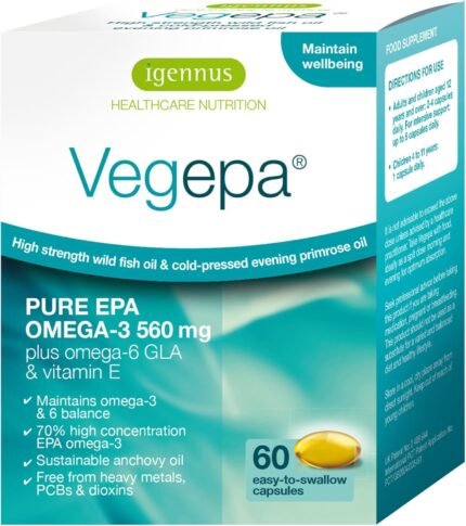 Igennus Vegepa, EPA Omega 3 & GLA Omega 6, Ultra Pure Wild Fish Oil & Evening Primrose Oil, 60, 560mg EPA per Serving, 30 Servings, 60 Capsules