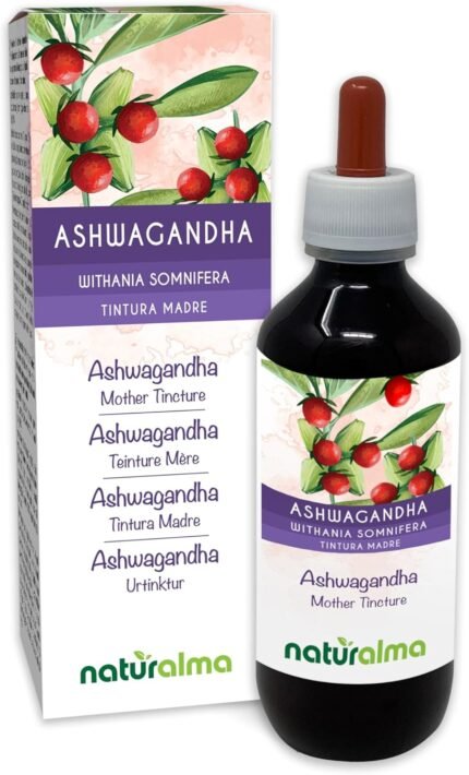 Ashwagandha or Indian Ginseng (Withania somnifera) Roots Alcohol-Free Mother Tincture Naturalma – Liquid Extract Drops 120 ml – Food Supplement – Vegan
