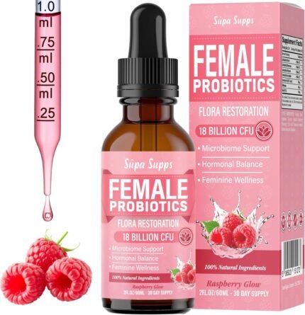Female Probiotics Liquid 60ml – Raspberry Flavour | Flora Probiotics for Women with Lactobacillus Reuteri | Intimate & Gut Support | Fast Absorption Daily Formula for Feminine Wellness