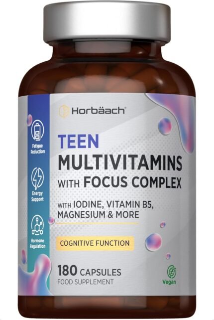 Multivitamin Tablets for Teenagers with Focus Complex | 180 Capsules | High Strength Complex with Vitamin B6, B5, Magnesium, Iron and Zinc | Vegan Supplement for Teens 13+ | by Horbaach