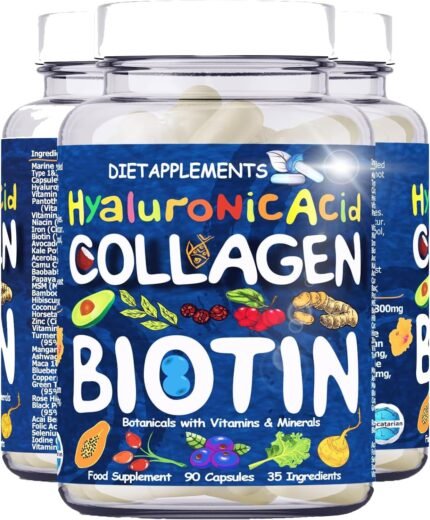 Marine Collagen Type1&3 1800mg, Biotin 10000mcg/serving, Hyaluronic Acid, Vitamins, Minerals, Botanicals | 2432mg/serving | Hydrolysed High Strength Peptides Supplement | Skin, Hair, Nails, Joints