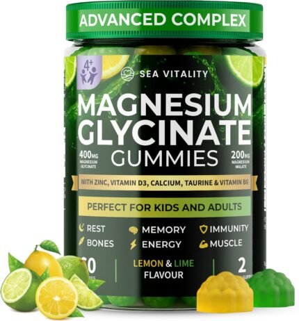 Magnesium Glycinate Gummies for Kids & Adults – High Strength Magnesium Glycinate 400mg with Malate, Zinc, D3, B6 & Taurine – Lemon & Lime Flavours – Sleep, Focus & Relaxation – 60 Chews