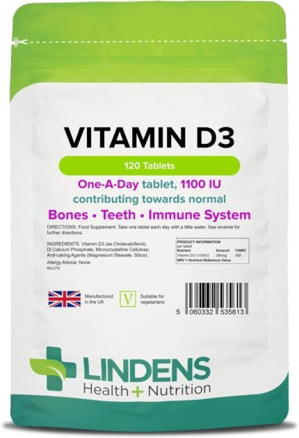 Lindens Vitamin D3 1100IU – 120 Tablets – Immune System, Bones, Teeth, UK Manufacturer Immune Support | (4 Months Supply) | Suitable for Vegetarians | Letterbox Friendly