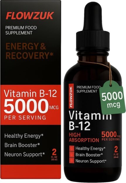 Vitamin B12 Liquid Drops 5000mcg – High Strength Methylcobalamin – Fast Absorbing Vegan B12 Supplement – 60ml Dropper Bottle – Gluten Free, Energy & Wellness Support