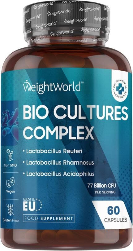Bio Cultures Complex Probiotics – 60 Billion CFU – 20 Live Bacterial Cultures – 60 Vegan Capsules for Women & Men – Lactobacillus Acidophilus, Gasseri, Rhamnosus & Reuteri – by Alpha01