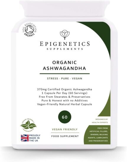 Organic Ashwagandha 370mg | Natural Withania Somnifera Herb Supplement | 60 Vegan Friendly Capsules UK Made | Long 2 Month Supply by Epigenetics Supplements