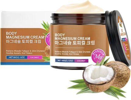 Body Magnesium Cream-Magnesium Lotion,Magnesium Lotion for Sleep,Magnesium Butter Cream with Coconut Oil,Shea Butter, Leg Cramps&Pain,Muscle Relaxation,Deep Moisturizing&Lightweight