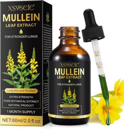 Mullein Leaf Extract for Lungs – Mullein Drops for Mucus & Phlegm Remover | Alcohol-Free Lung Cleanse | Plant-Based Respiratory Support Formula | 60ml