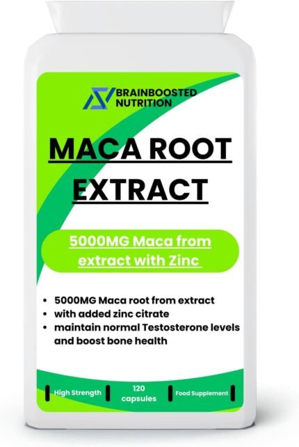 Maca Root Extract 5000mg with Zinc – High Strength Maca Capsules for Energy, Vitality & Performance – 120 Capsules (4 Month Supply)