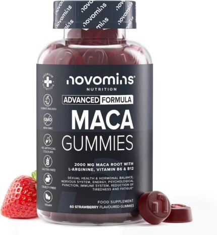 Maca Root Gummies – High Strength Alternative to Maca Powder & Maca Capsules – 2000mg – Made from 100% Peruvian Maca Root Powder with L-Arginine, Vitamin B12 & B6-60 Count – Novomins