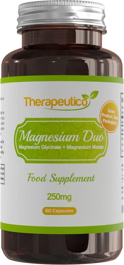Magnesium Glycinate & Magnesium Malate Blend | High Strength | 250mg | 60 Veg Capsules | Premium Quality | Made in UK | Vegan | Magnesium Duo