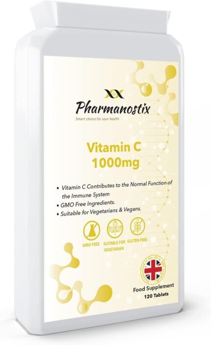 Vitamin C 1000mg (1 Gram) 120 Tablets – 4 Months Supply -Healthy Immune System- Antioxidant contributing to The Reduction of Tiredness and Fatigue –Manufactured in The UK by Pharmanostix