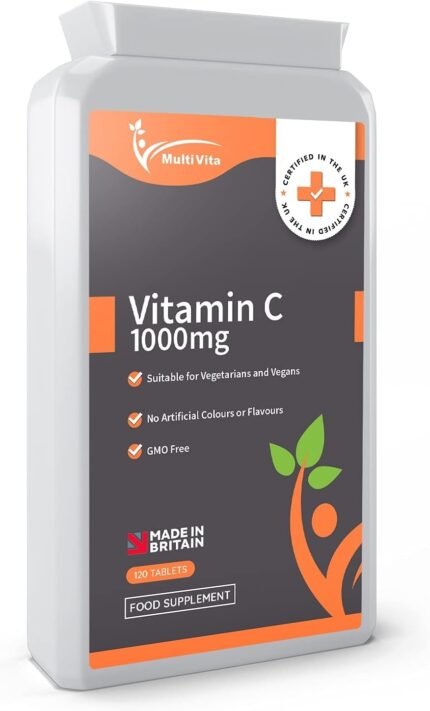 Vitamin C 1000mg 120 Tablets – High Strength Immune Support Contributes to The Reduction of Tiredness and Fatigue and to Normal Energy yielding Metabolism – Exclusively Manufactured in The UK