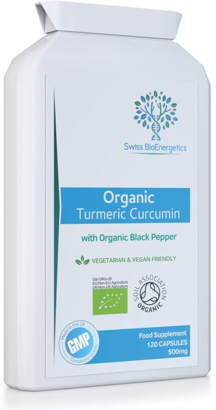 Organic Turmeric Curcumin 500 mg Plus Black Pepper – High Potency – 120 Veg Capsules – UK Manufactured, Non-GMO & Gluten Free – Suitable for Vegetarians and Vegans