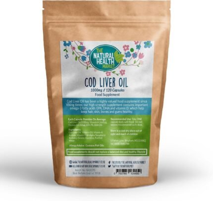 Natural Cod Liver Oil Capsules • Rich in Vitamins • Omega 3 Potent Superfood • by The Natural Health Market (180 Capsules)