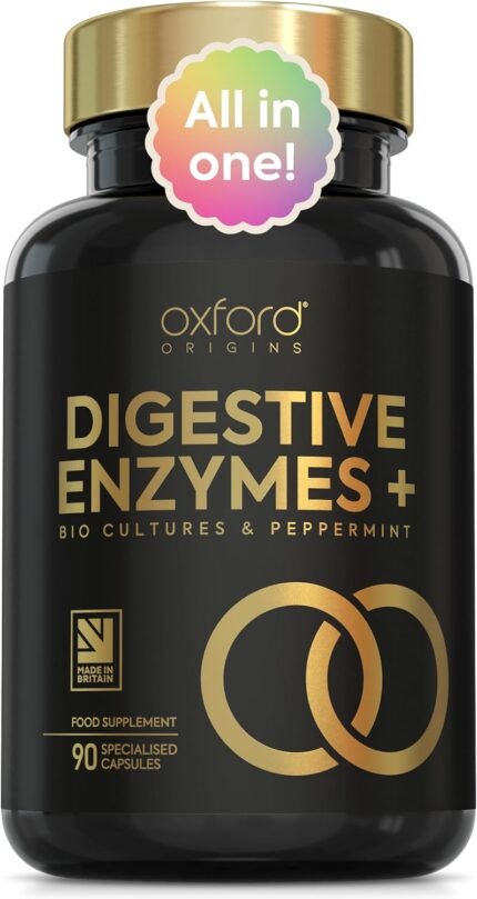 Award Winning 10-in-1 Digestive Enzyme Supplements | Made in The UK | Probiotics & Peppermint Oil for Gut Health, Bloating Relief and Belly Reduction | One Vegan Capsule per Meal | 60 Capsules