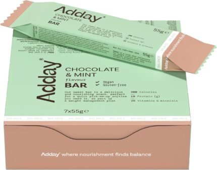 Adday – Low Calorie, High Protein Total Diet Meal Replacement Bar – Chocolate and Mint – Gluten Free, Vegan Friendly and Halal – 100% Nutritionally Complete with Fibre, Vitamin D, Iron and More