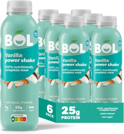 BOL Vanilla Power Shake — Ready-to-drink Nutritionally Complete Meal (289kcal) | 25g High Protein Shake Bottle | Low Sugar, Plant-based, Low Calorie Meal Replacement Shakes (410ml x 6 bottles)