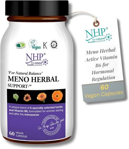 NHP Advanced Meno Herbal Support – Vegan Supplement for Hormonal Balance During Perimenopause & Menopause with Phytoestrogens, Vitamin B6, and Natural Herbal Ingredients 60 Vegan Capsules