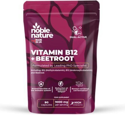 Beetroot & Vitamin B12 Complex – 9000mg Beetroot + 1000mcg Dual B12 (Methylcobalamin & Adenosylcobalamin) – Energy & Immune Support – 90 Capsules – UK Made (90)