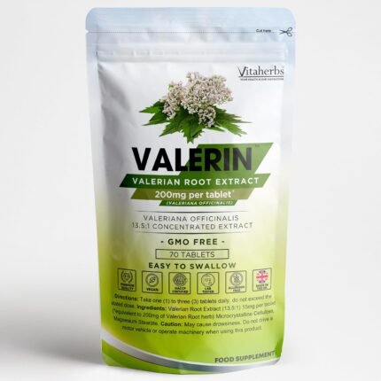 Valerin™ Valerian Root Tablets | Valerian Root Extract 200mg | Easy to Swallow Micro Tablets | 70 Vegan Tablets | Vitaherbs – Made in The UK