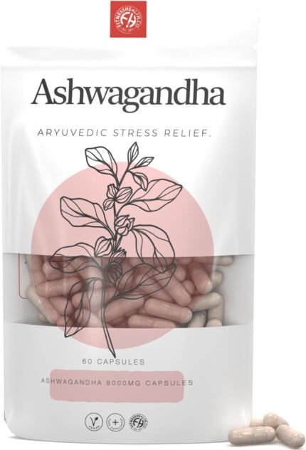 Fitness Health Ashwagandha Capsules 8000MG 60 Capsules – Pure Aryuvedic – Herbal Stress Relief Capsules – Support Mind Relaxation for General Well Being – High Strength Ashwagandha Supplement