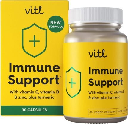 Vitl Immune Support Supplement – 30 Vegan Capsules – with Vitamin D, Vitamin C, Folate, Zinc, Turmeric & Elderberry Extracts – 1 Month Supply
