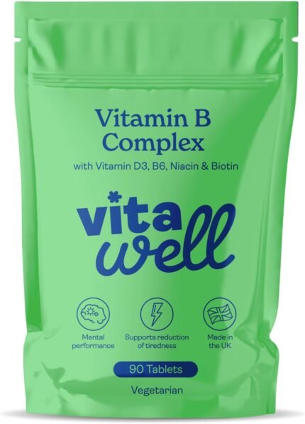 Vitawell Vitamin B Complex with Vitamin D3 | Energy, Tiredness & Fatigue Support | 3 Month Supply | High Strength B1, B2, B6, B12 | UK Made (90 Tablets)