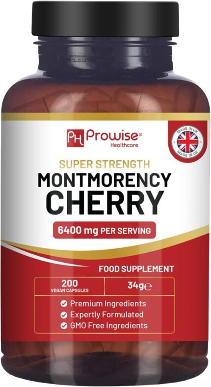 Montmorency Cherry 6400mg – 200 Tart Cherry Capsules – Natural Tart Cherry Extract Supplement for Men & Women – Super Strength, Gluten Free, Vegan and GMO Free – Made in The UK by Prowise