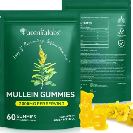 Mullein Gummies for Lungs, 2000mg Mullein Leaf Extract for Lungs Detox and Cleanse, Organic Mullein Herbal Supplement for Mucus Relief & Respiratory Support, Non-GMO, 60 Gummies (1 Month Supply)
