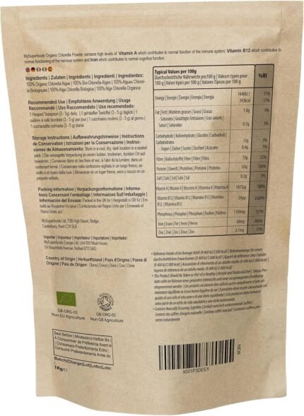 Chlorella Powder | Organic | 1kg | Cracked Cell Wall | Energy & Natural Detox | High in Vitamin A, B12 & Iron | MySuperfoods