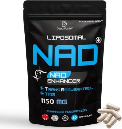 Direct Purity NAD Supplements – 1150 mg Healthy Aging Liposomal NAD with Trans Resveratrol TMG and Piperine Blend Supports Cellular Health DNA Repair Energy and Metabolism – 60 Vegan Capsules