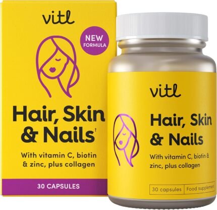 VITL Hair, Skin & Nails + Collagen, A dose of Classic Complexion Heroes Such as Collagen, Vitamin E, Biotin and Zinc | 30 Capsules