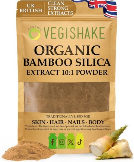Organic Silica Extract 10:1| High Strength Naturally Sourced Silica Supplement | for Skin Health and Mobility | Vegan Capsules | from Bamboo Extract | UK Made (250G)