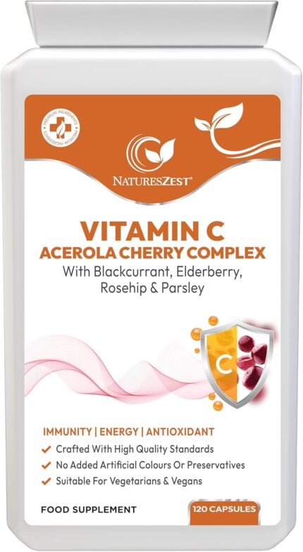 Vitamin C Acerola Cherry Complex – 120 Vegan Capsules | High Strength Immune Support with Elderberry, Rosehip, Blackcurrant & Parsley | Natural Vegan Vitamin C | Non-GMO, Made in UK – NATURES ZEST