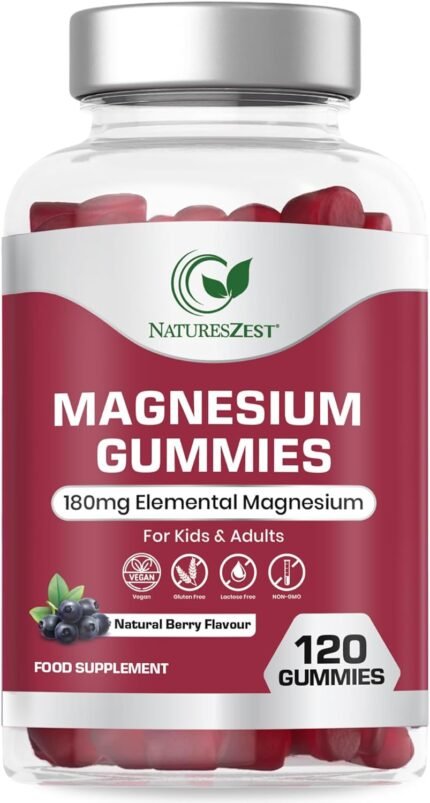 Magnesium Gummies 180mg | 120 Gummies | High Strength Magnesium Supplement for Kids & Adults | Supports Sleep, Muscle, Relaxation & Immunity | Vegan, Non-GMO | Natural Berry Flavour – NATURES ZEST