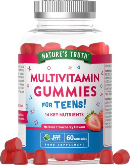 Multivitamin Gummies for Teens | 60 Vegan Gummies | with Vitamin A, C, D, B12, and Zinc | 14 Key Nutrients | Strawberry Flavour | Nature’s Truth