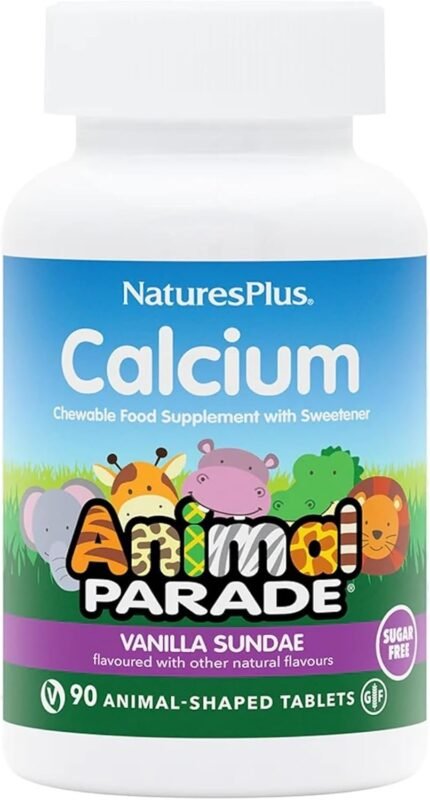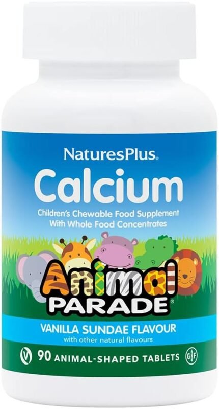 NaturesPlus Animal Parade Calcium Children’s Chewable – Calcium Supplement for Kids Natural Vanilla Flavour – Vegan, Gluten Free – 90 Chewable Animal Shaped Tablets