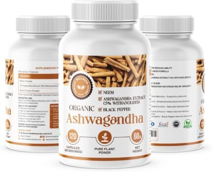 Organic Ashwagandha & Neem Capsules with Black Pepper | Stress, Mood & Immune Support for Men & Women | Natural Energy & Vitality | 120 Vegan Adaptogen Capsules