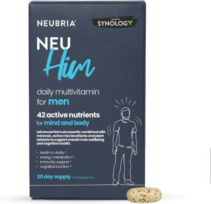 NEUBRIA NEU HIM Multivitamin for Men with Botanicals – 42 Active Nutrients, Vitamin D3, Zinc, Iron, Herbal Extracts, Cognitive Formula Ideal for Active Lifestyles – UK Made, 30 Tablets