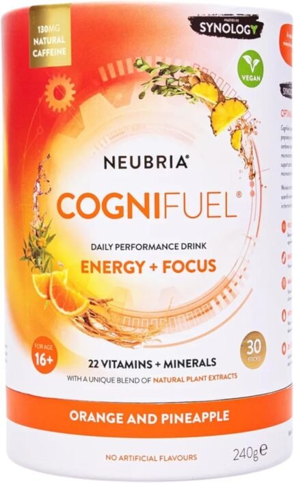 NEUBRIA Cognifuel | 30 Hydration Sachets, Gym & Workout Energy Drink with Electrolytes, Caffeine, L-Theanine, Choline, L-Tyrosine & Vitamins, Improves Cognition, Focus, Orange & Pineapple