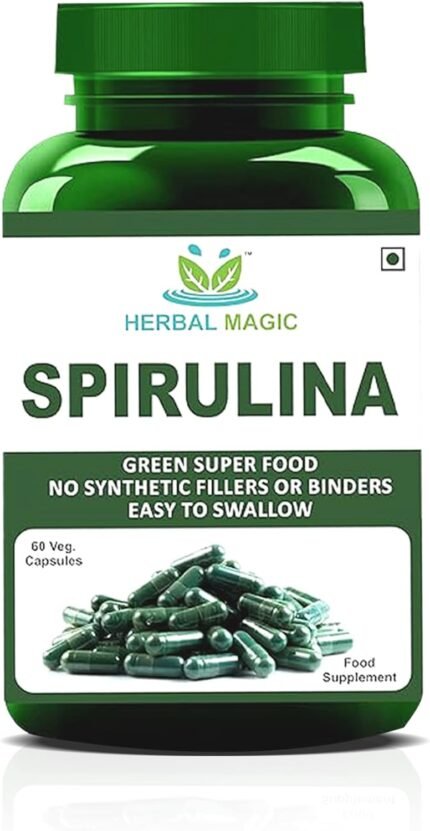 Herbal Magic Spirulina Capsules – 100% Natural Superfood for Energy, Detox & Immunity, 60 Vegan Capsules, Non-GMO