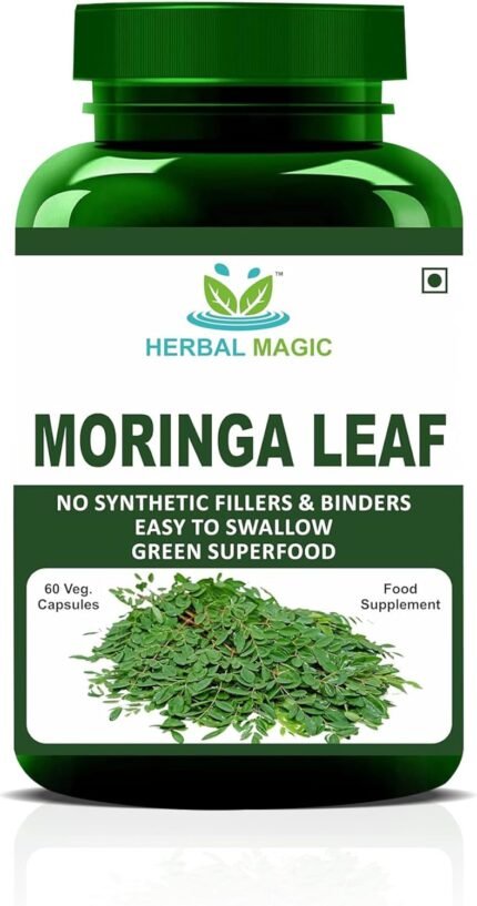 Herbal Magic Moringa Capsules – 100% Natural Moringa Leaf Powder, 60 Capsules, Vegan & Non-GMO Superfood Supplement