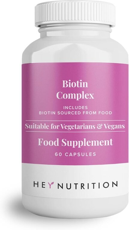 Hey Nutrition Biotin Complex Supplement – Biotin, Selenium, and Zinc – Supports Hair, Nails & Skin – Promotes Immune Health – No Artificial Flavours, Non-GMO & Dairy-Free – 60 Vegan Capsules
