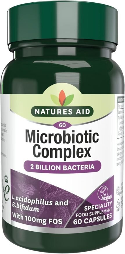 Natures Aid Microbiotic Complex – Digestive Friendly Bacteria Supplement Gut Health Support – High Strength Lactobacillus Acidophilus – Vegan, Vegetarian, Non-GMO, Gluten Free – 60 Capsules