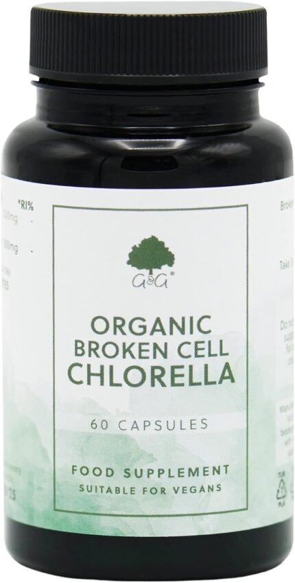 Organic Broken Cell Chlorella – 1200mg Organic Chlorella per 3 Capsule Dose – 60 Vegan Capsules – Non-GMO, Made in The UK by G&G Vitamins